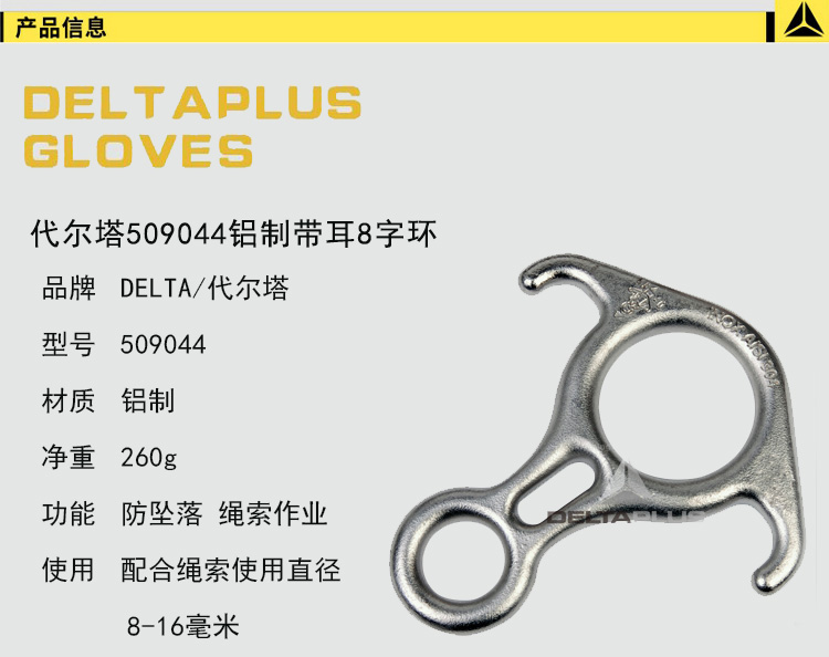 | 代尔塔509044铝制带耳大8字环坠落防护高空作业抢险救援 |
