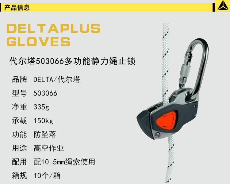 | 代尔塔503066多功能静力绳止锁器救生绳消防逃生安全绳防坠落 |
