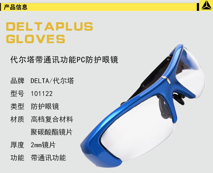| 代尔塔101122带通讯功能PC防护眼镜运动款支持蓝牙连接 |