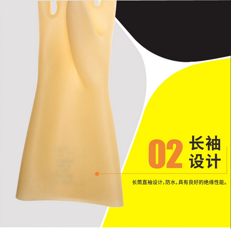 2、长筒直袖设计,防水,具有良好的绝缘性能