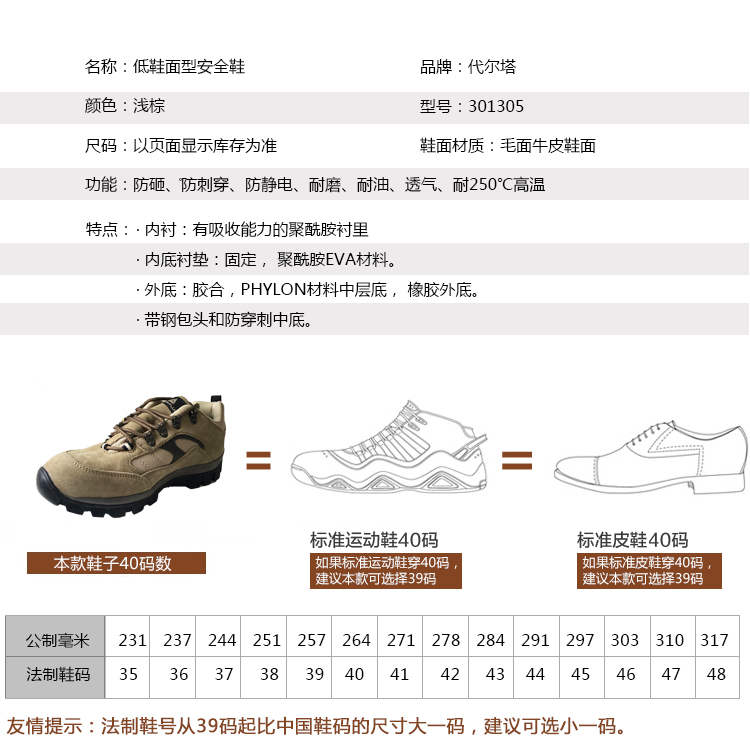 2、防砸,防刺穿,防静电,耐磨,耐油,耐250℃高温,透气。