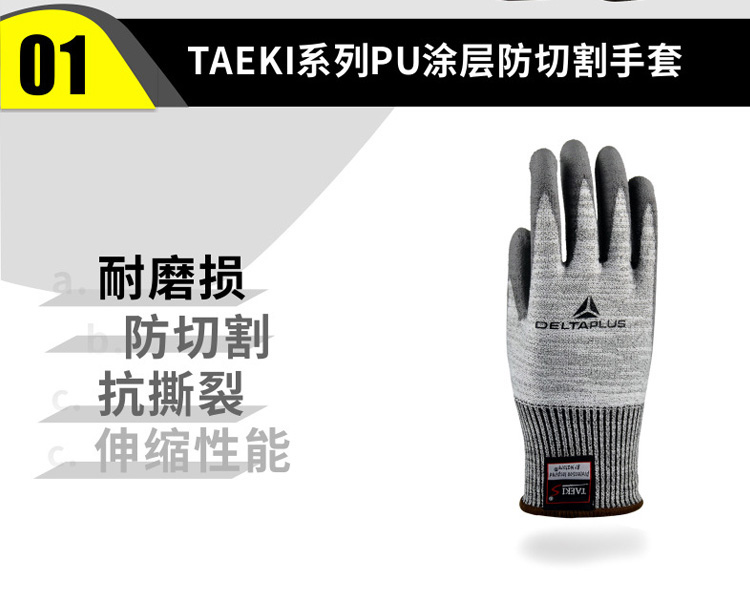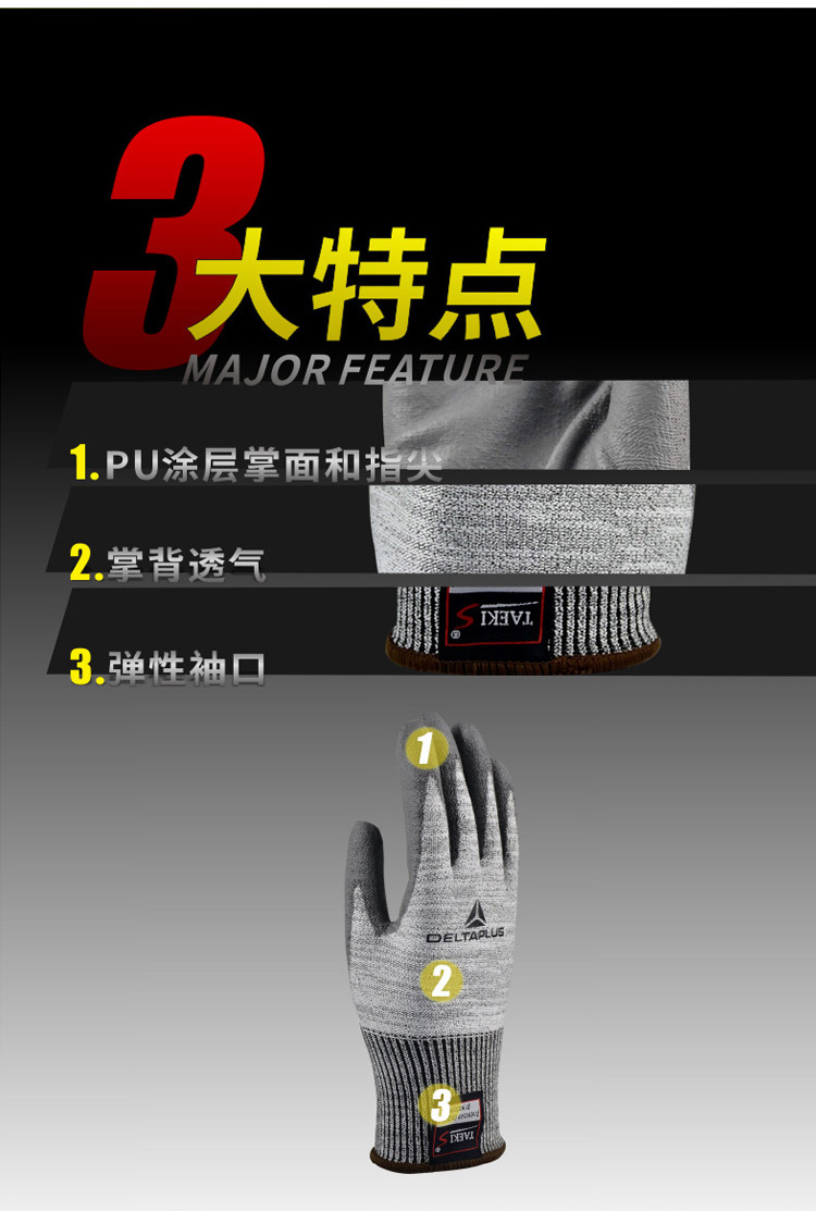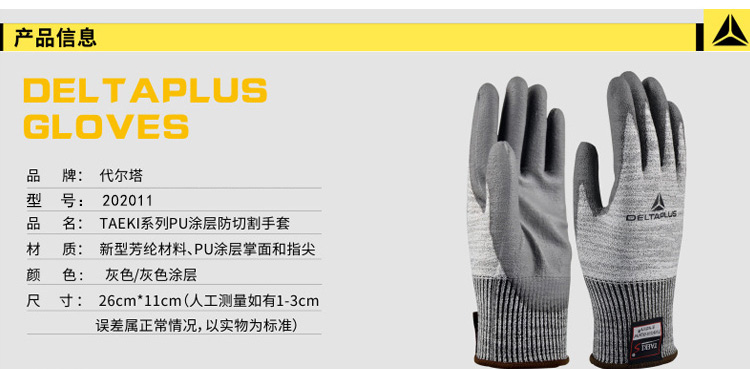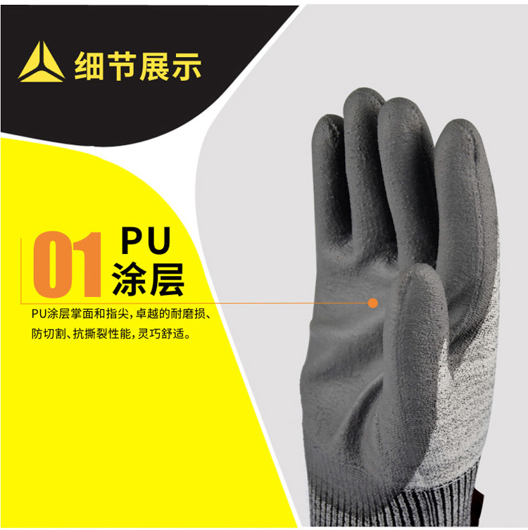 | 代尔塔202011防切割手套PU涂层防割防护手套耐磨损抗撕裂工业劳保 |