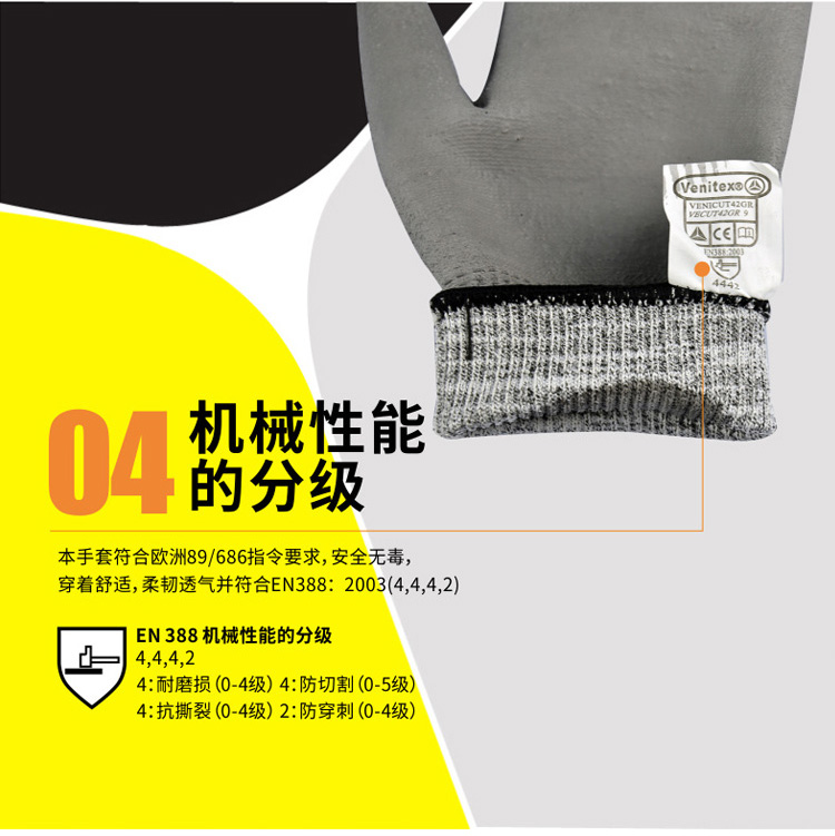 1、PU涂层掌面和指尖,性能佳,灵巧舒适