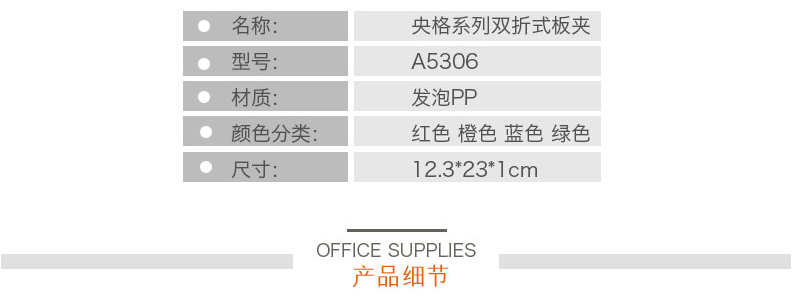 | 齐心A5306 双折式板夹 票据夹 发泡PP材质 |