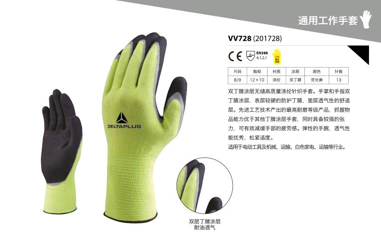 | 代尔塔201728双层丁腈透气手套安全劳保防护手套工作 |