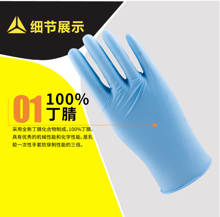 | 代尔塔201373无粉丁腈一次性手套防化厨房餐饮食品级安全手套 |