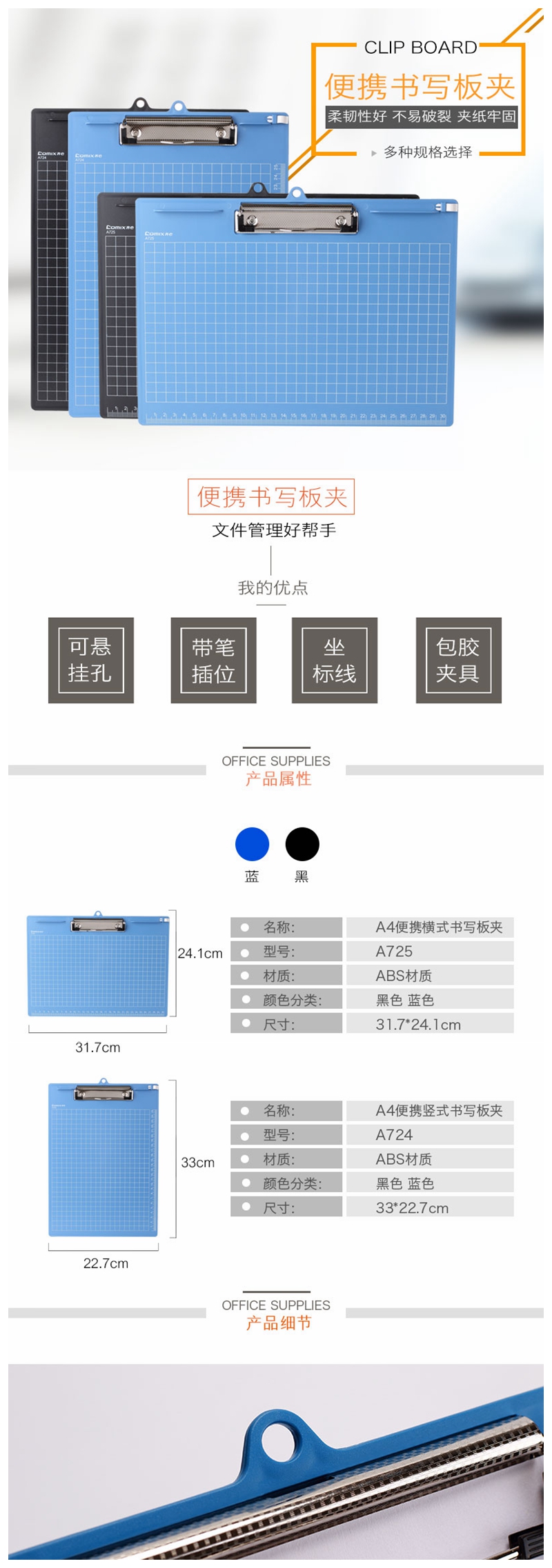 | 齐心A724/A725 便携式书写板夹 A4竖式/横式 |