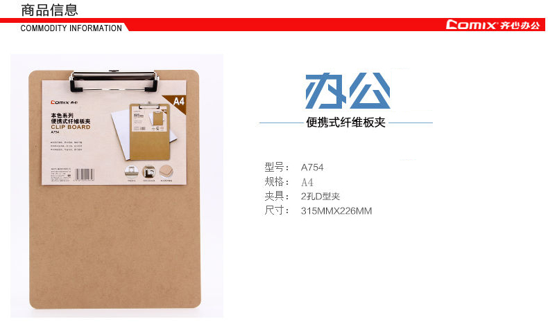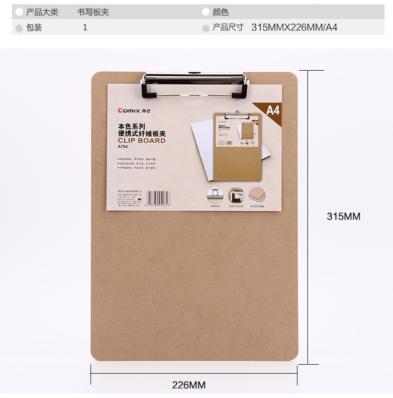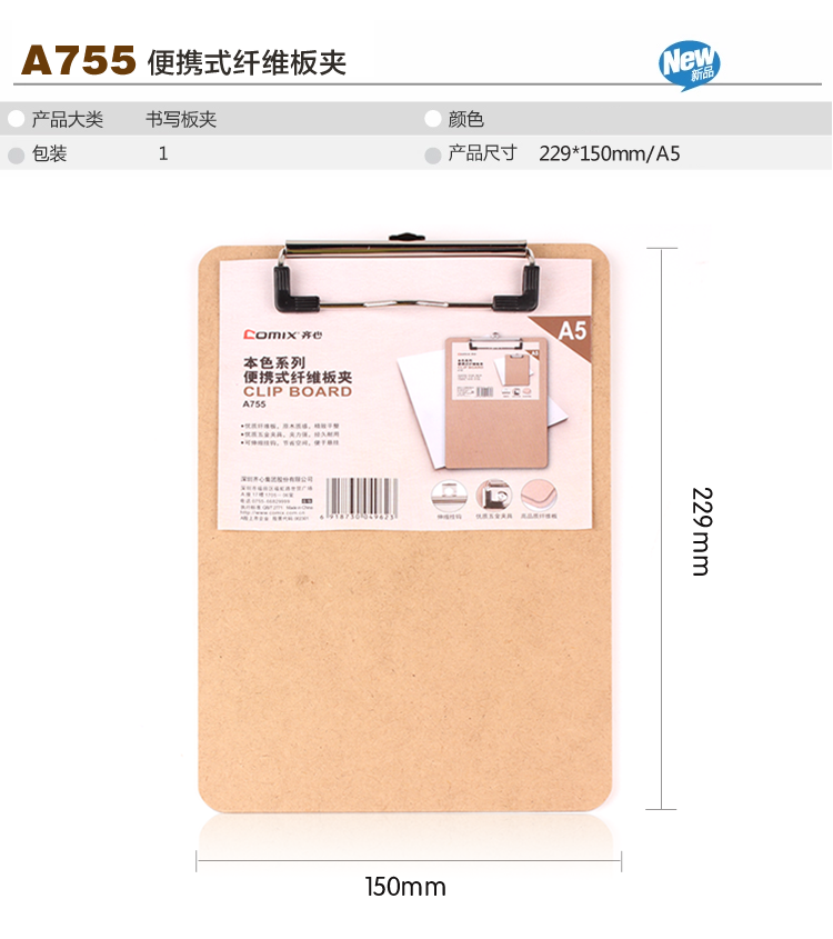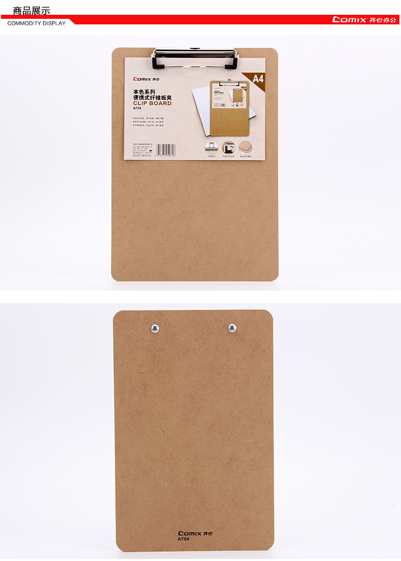 | 齐心A754/A755 本色系列便携式纤维板夹A4/A5竖式 |