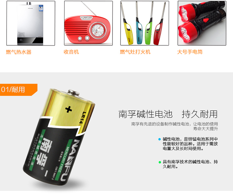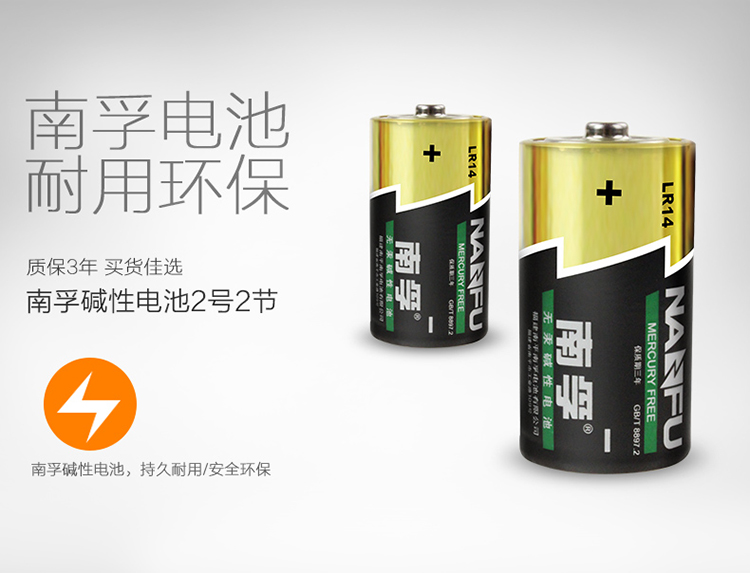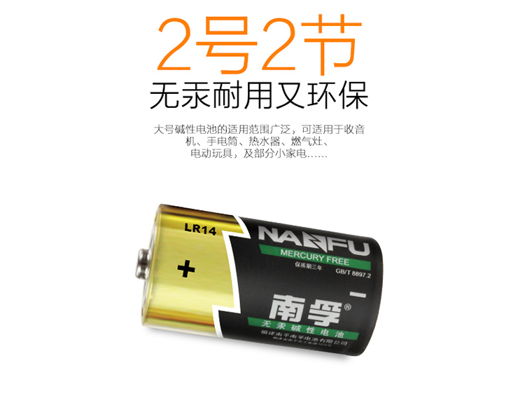 | 南孚(NANFU)LR14-2B干电池2号碱性电池2粒挂卡装/收音机/遥控器 |