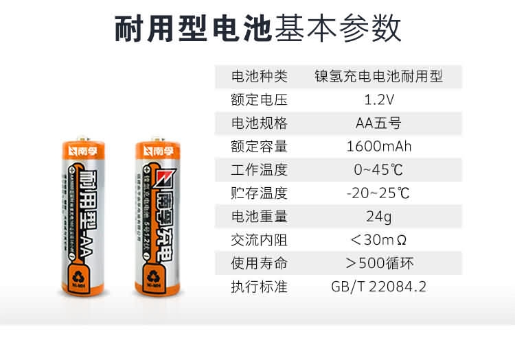 | 南孚(NANFU)AA-2B+耐用型5号充电电池1600mAh镍氢2粒装 |