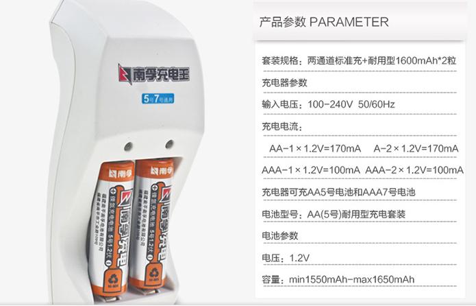 | 南孚充电王5号AA-2B+充电器 耐用型5号(AA) 南孚充电套装 充电器 |