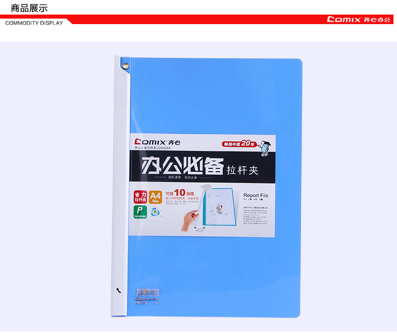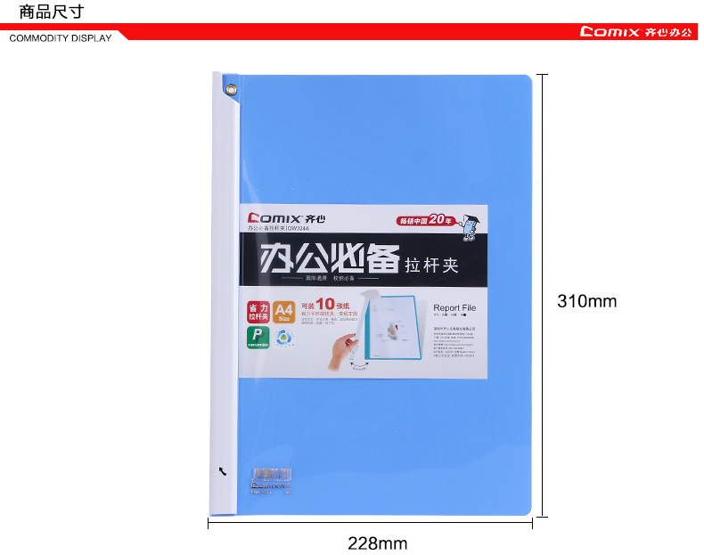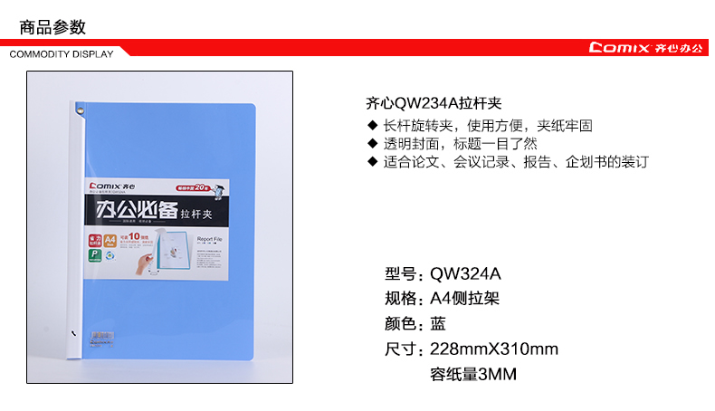 | 齐心QW324A 蓝色办公必备拉边杆报告夹A4 |