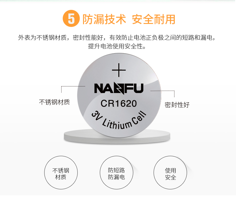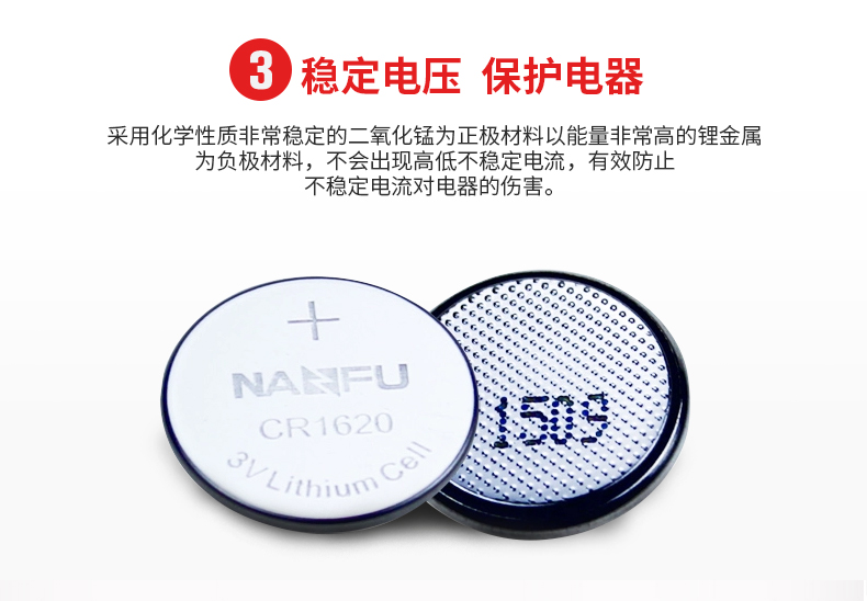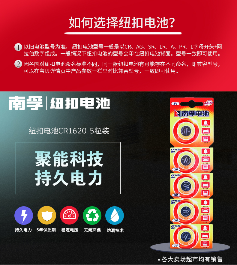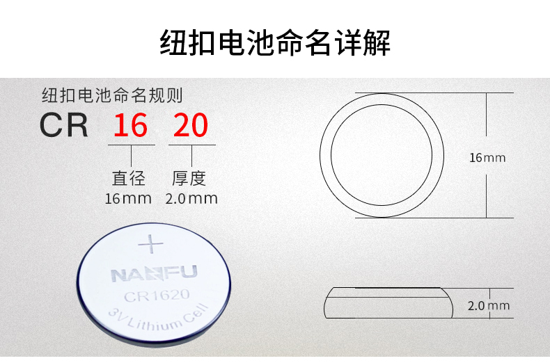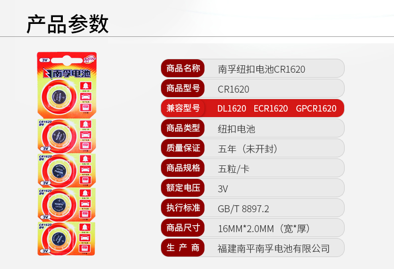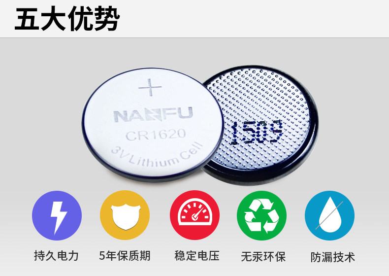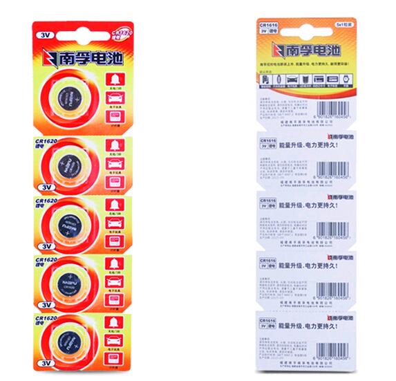 | 南孚纽扣电池CR1620 3V锂电子玩具门铃马自达汽车钥匙小圆电池5粒 |