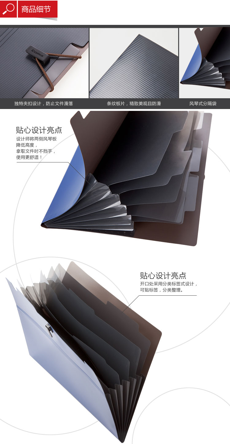 开口处采用分类标签式设计,可贴标签,分类整理。