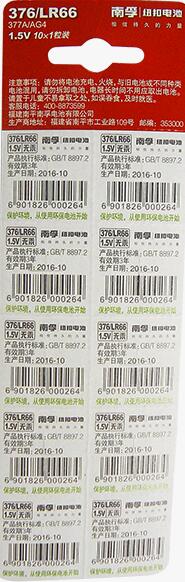 | 南孚376纽扣电池LR66 SR626 LR626 AG4 377A 377S石英表手表电子 |