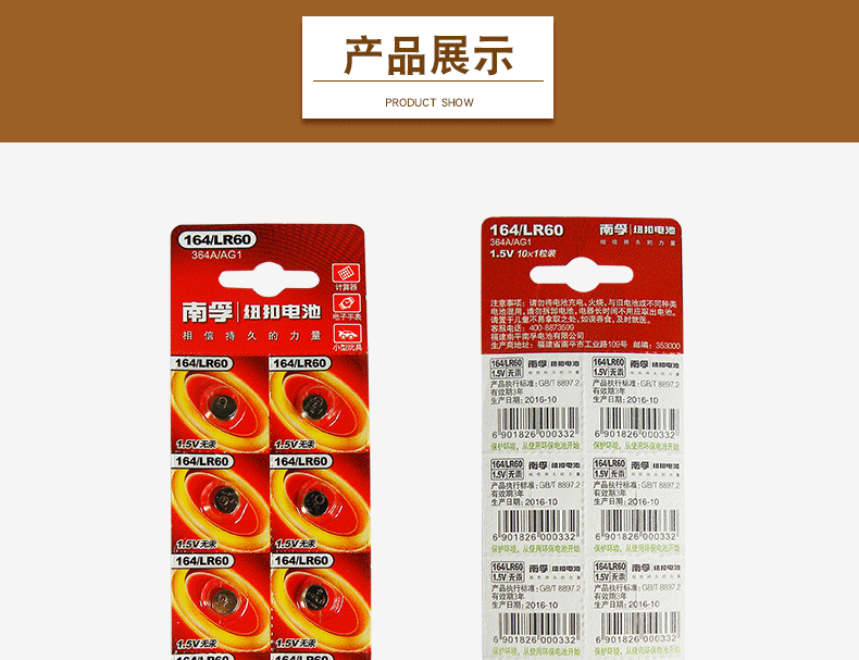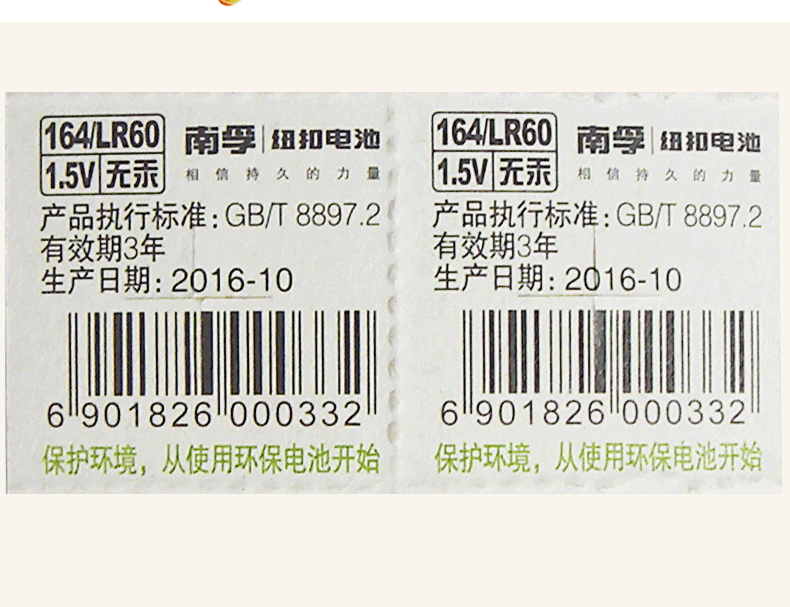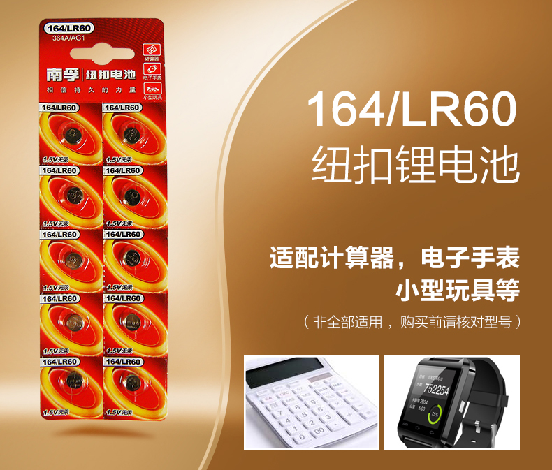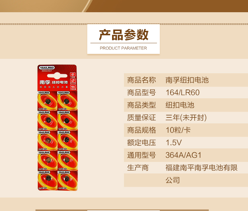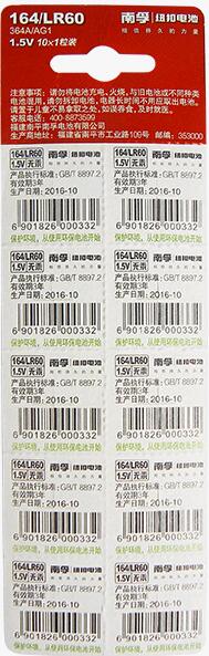 | 南孚纽扣电池 164 SR621SW/AG1/LR621/364A 手表石英表电池 10粒 |