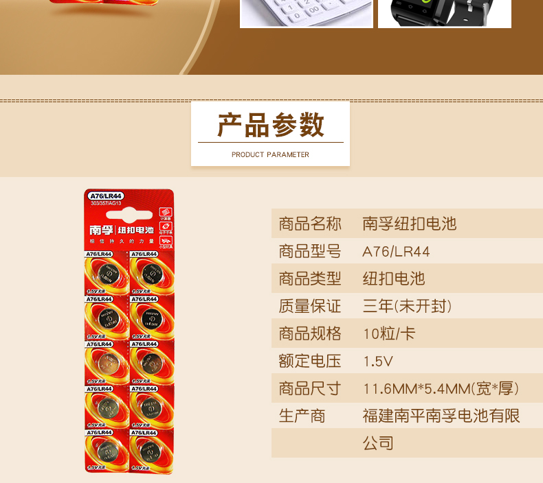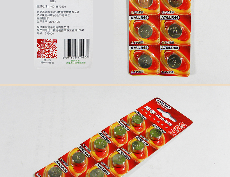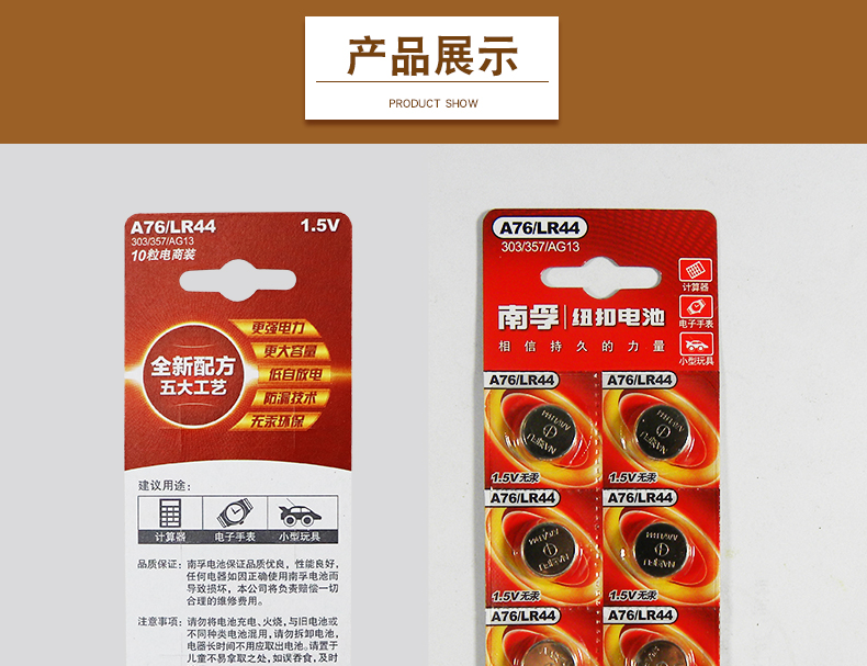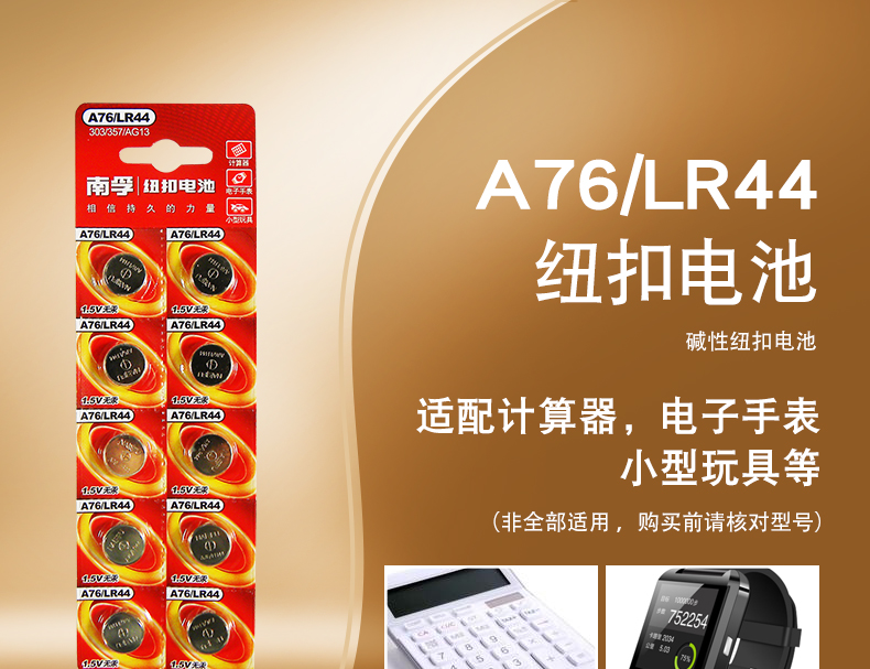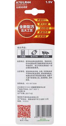 | 南孚LR44纽扣碱性电池A76 AG13 L1154电子1.5V玩具游标卡尺用10粒 |