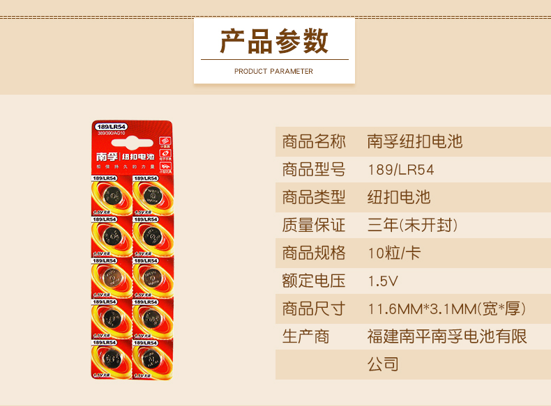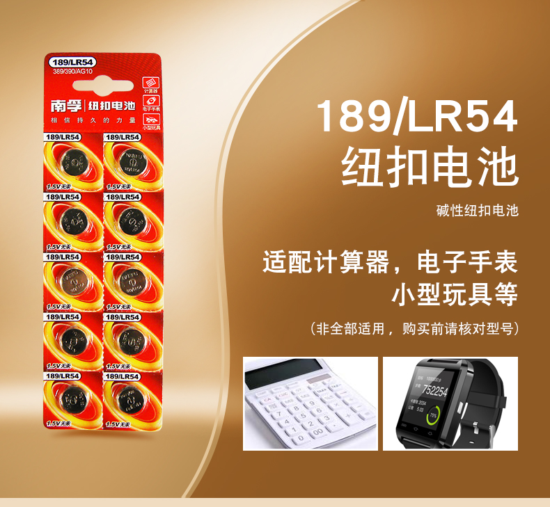 | 南孚LR54纽扣电池189 389 LR1130 AG10 L1131电子计算机10粒 |