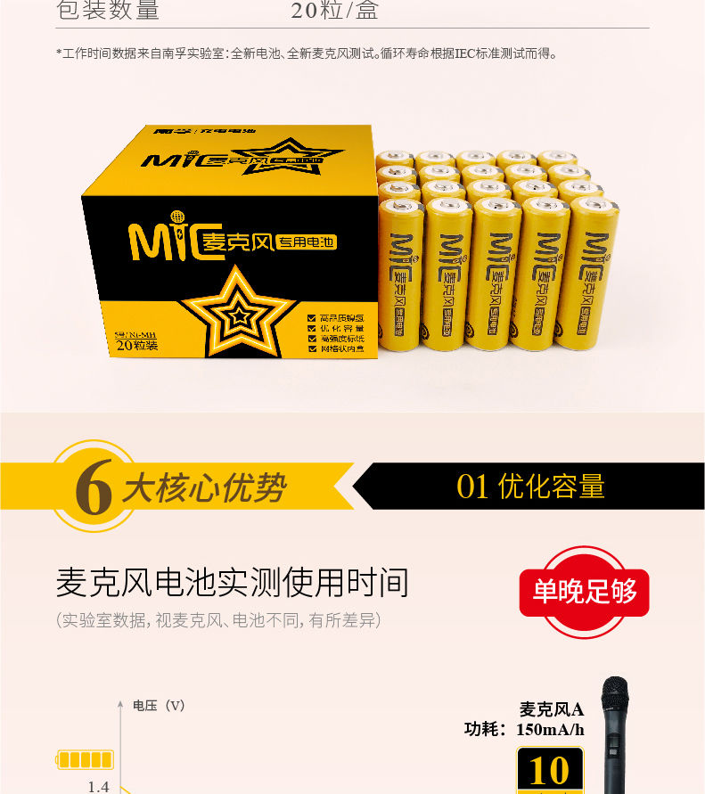 | 南孚5号充电电池 KTV无线话筒麦克风专用五号4节遥控器2050大容量 |