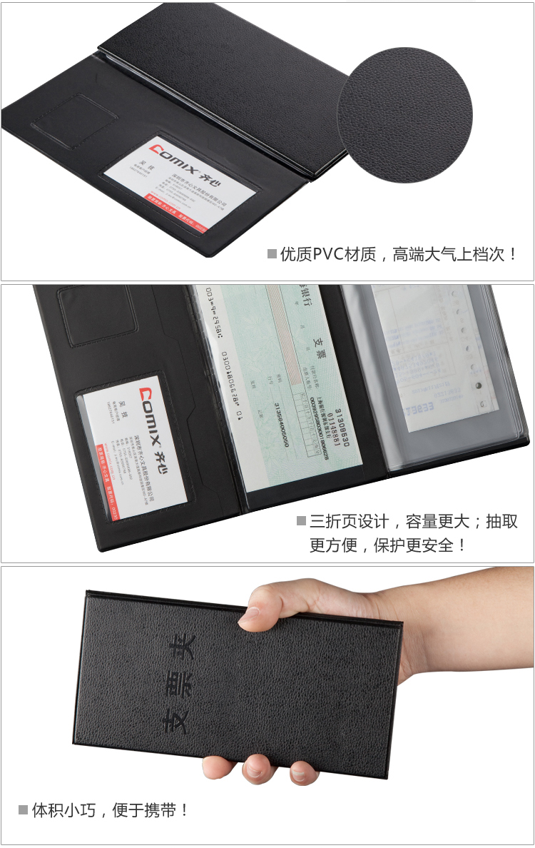| 齐心A615 黑色 多功能支票夹 财务票据夹 |