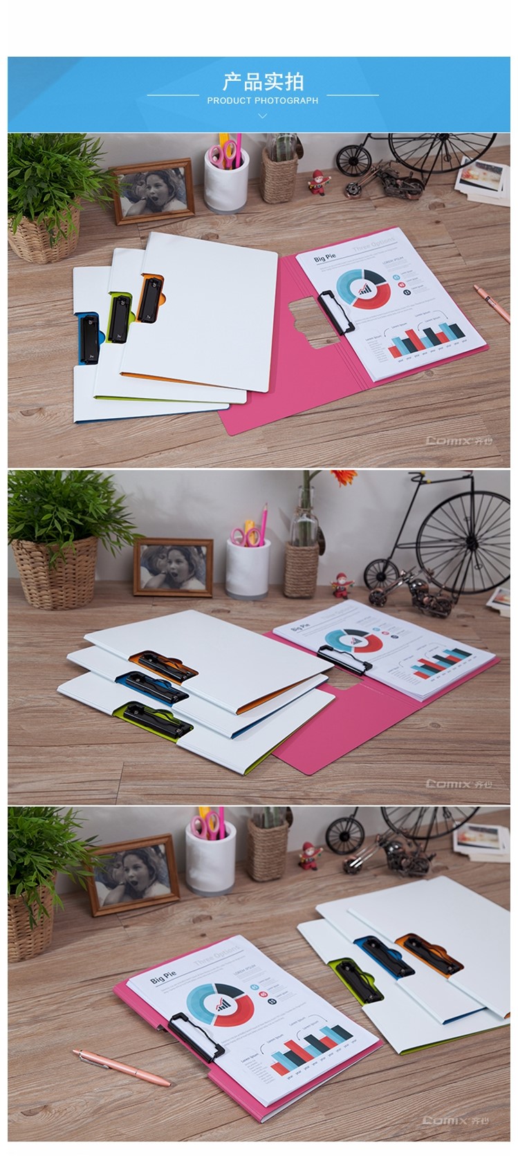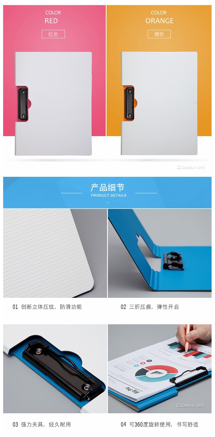 | 齐心 A5308 央格 双折式板夹 A4 横式 |