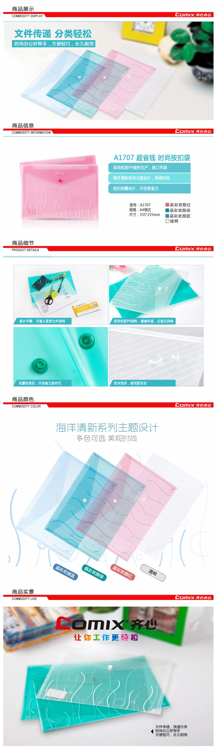 | 齐心A1707 超省钱 时尚按扣式文件袋A4横式 |