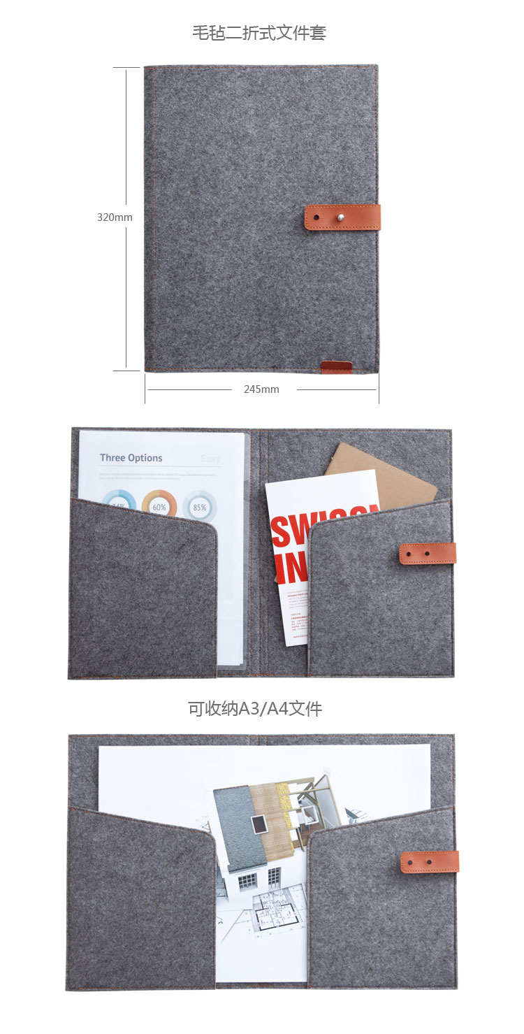 | 齐心A5206 A3/A4通用毛毡二折式文件套 灰色 |