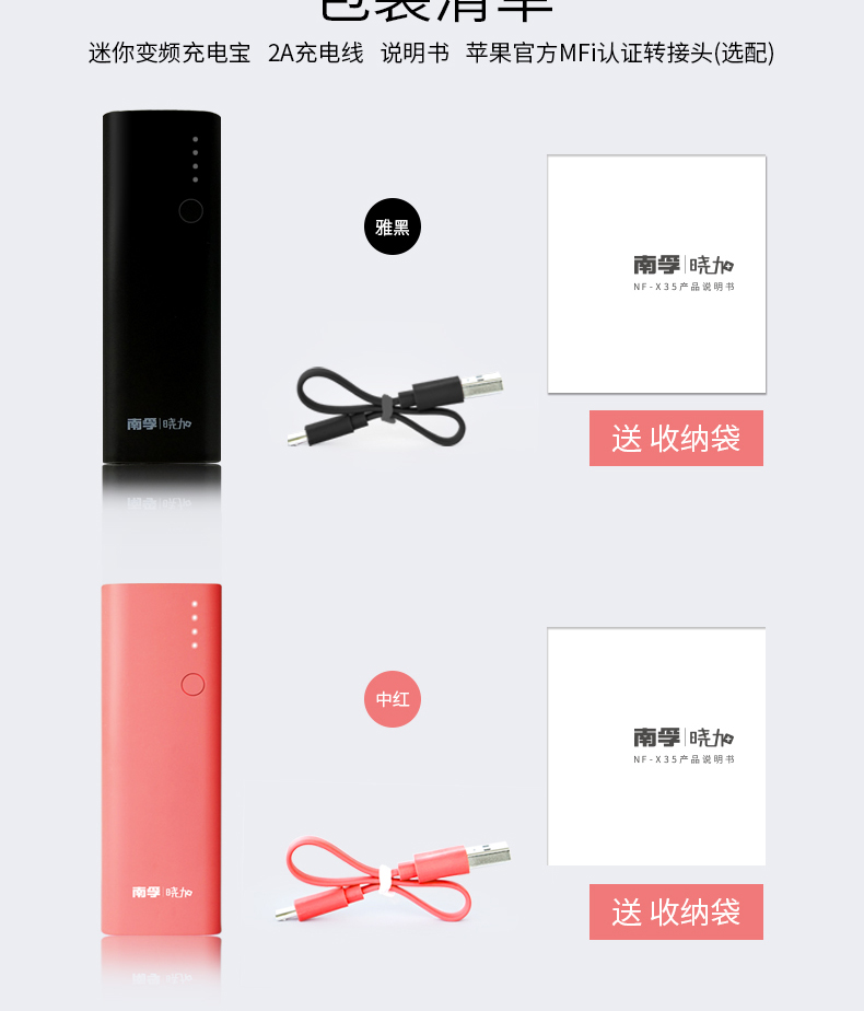 | 南孚晓加NF-X35迷你充电宝便携小巧移动电源可爱快充 |