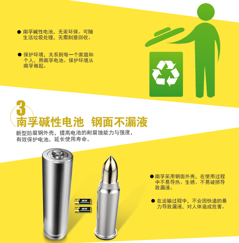 1、南孚先进的设备制造的碱性电池,大大提升使用寿命