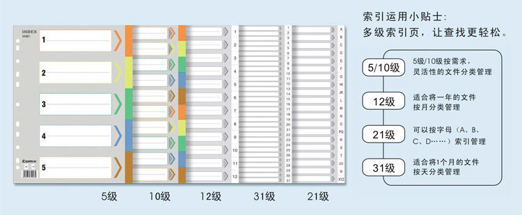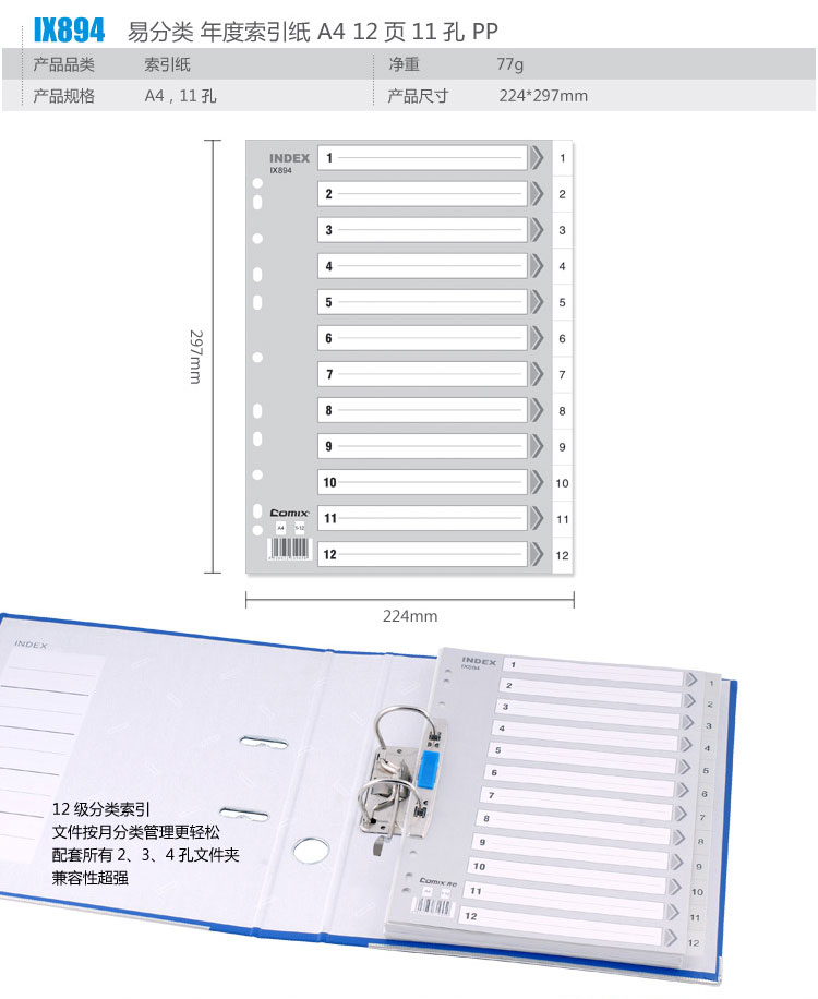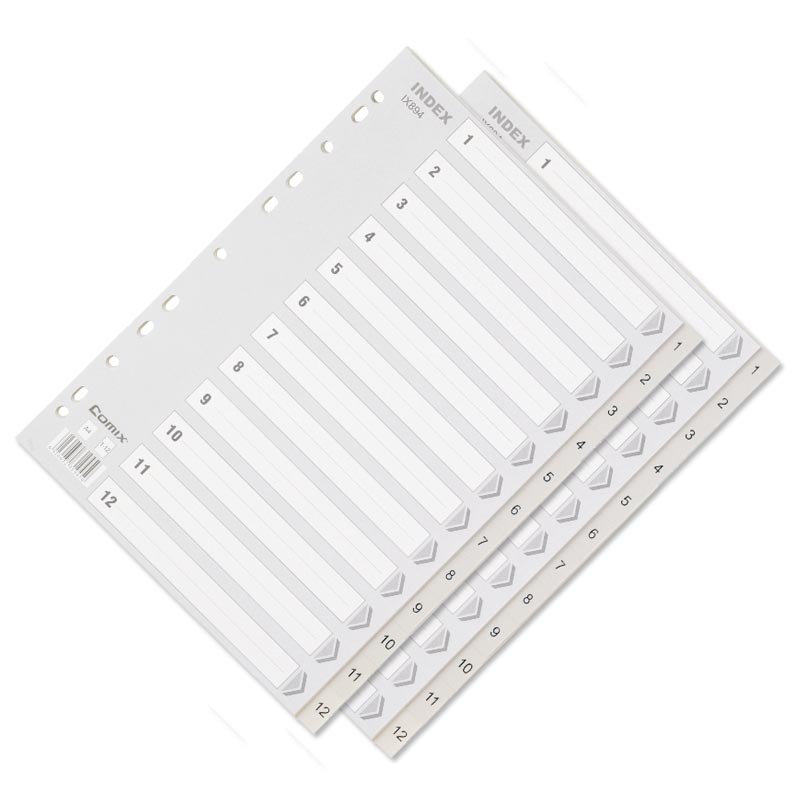 | 齐心IX894 灰色易分类 年度索引纸 A4 12页(1-12) 11孔 PP |