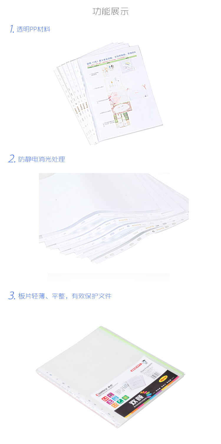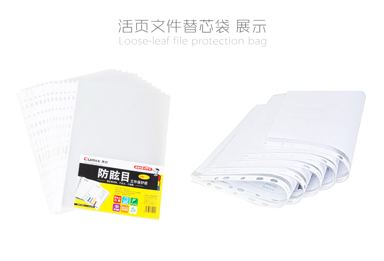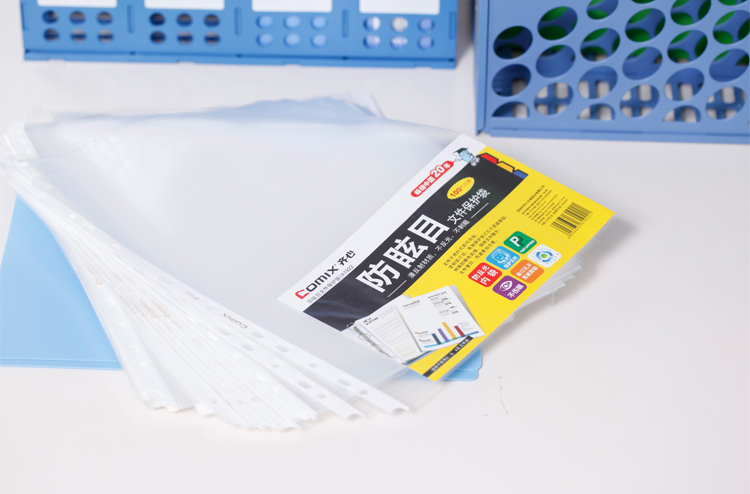 | 齐心A1922 防眩目文件保护袋 A4 11孔 100个/盒 CPP |