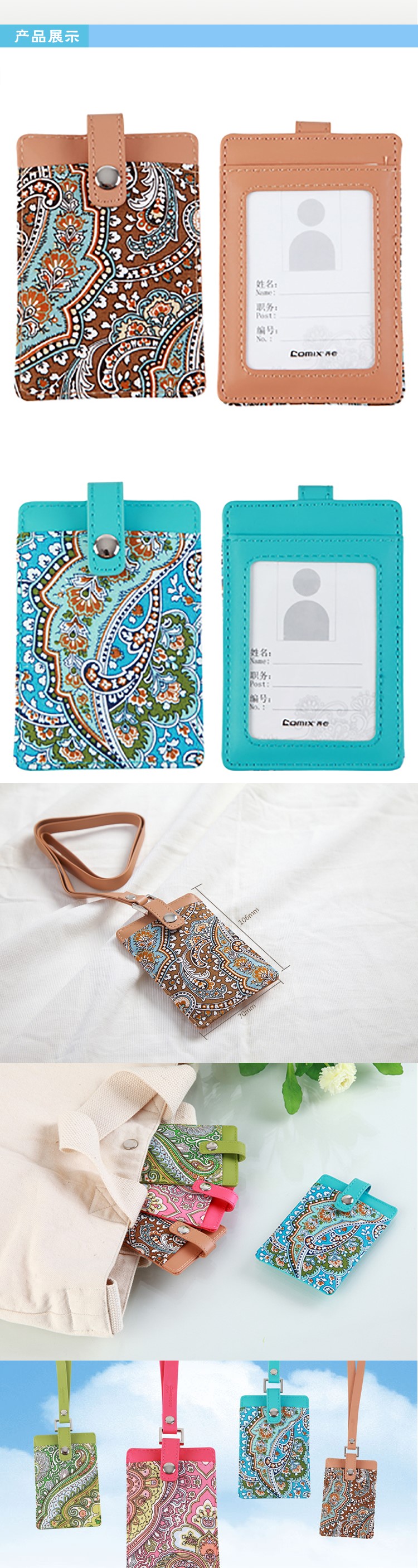 | 齐心A7930A 时尚多彩PU+布 身份识别卡套 竖式 |