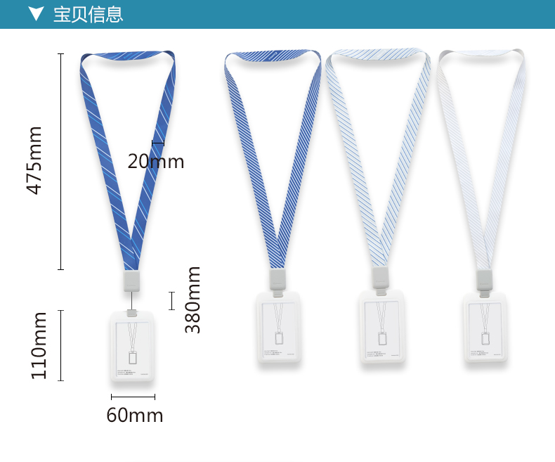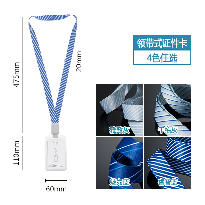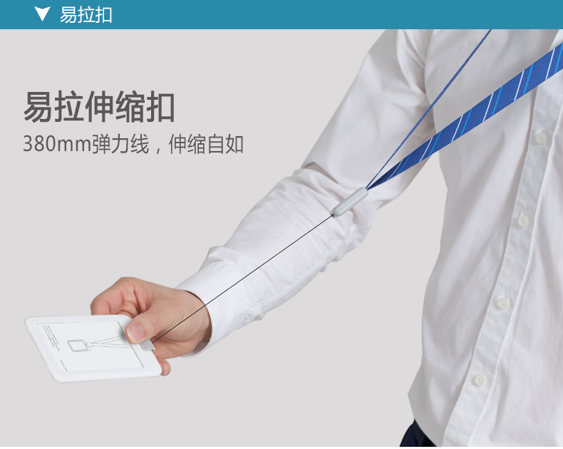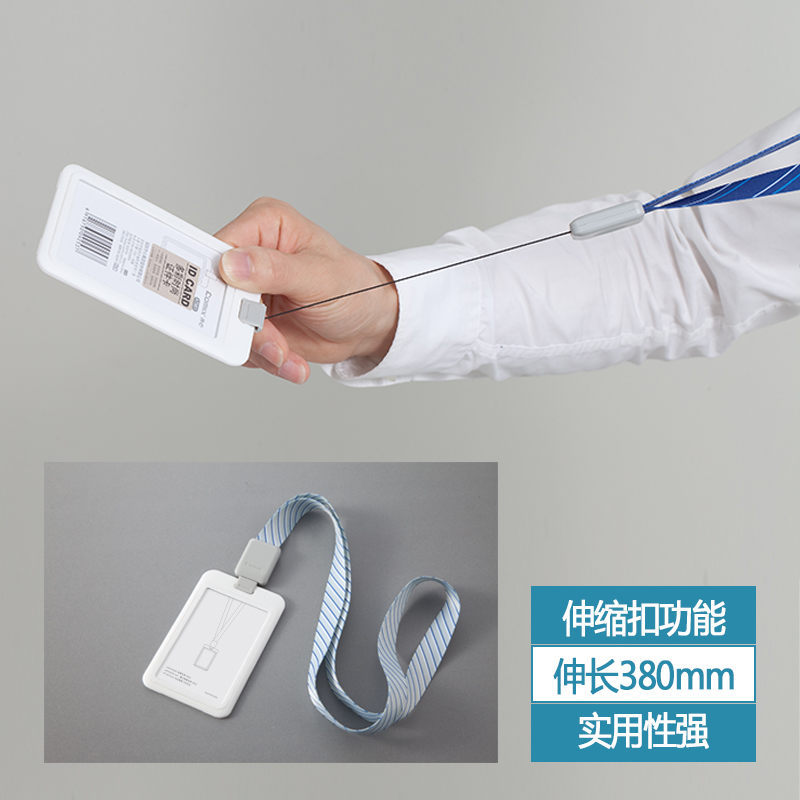 易拉伸缩扣,380mm弹力线,伸缩自如,领带式挂绳证件卡套,适合多种场合
