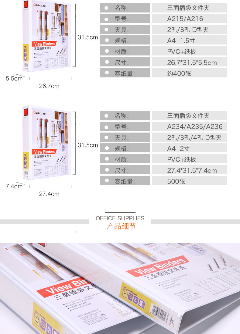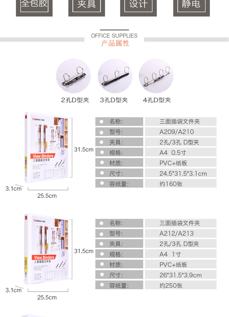| 齐心A209, A210,A212,A213,A215,A216,A234, A235, A236易展示三面插袋文件夹 | |||