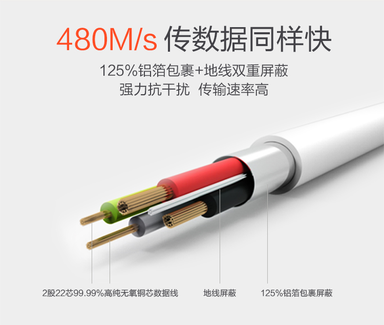 1、铝箔包裹,地线双重屏蔽,强力抗干扰,传输速率高