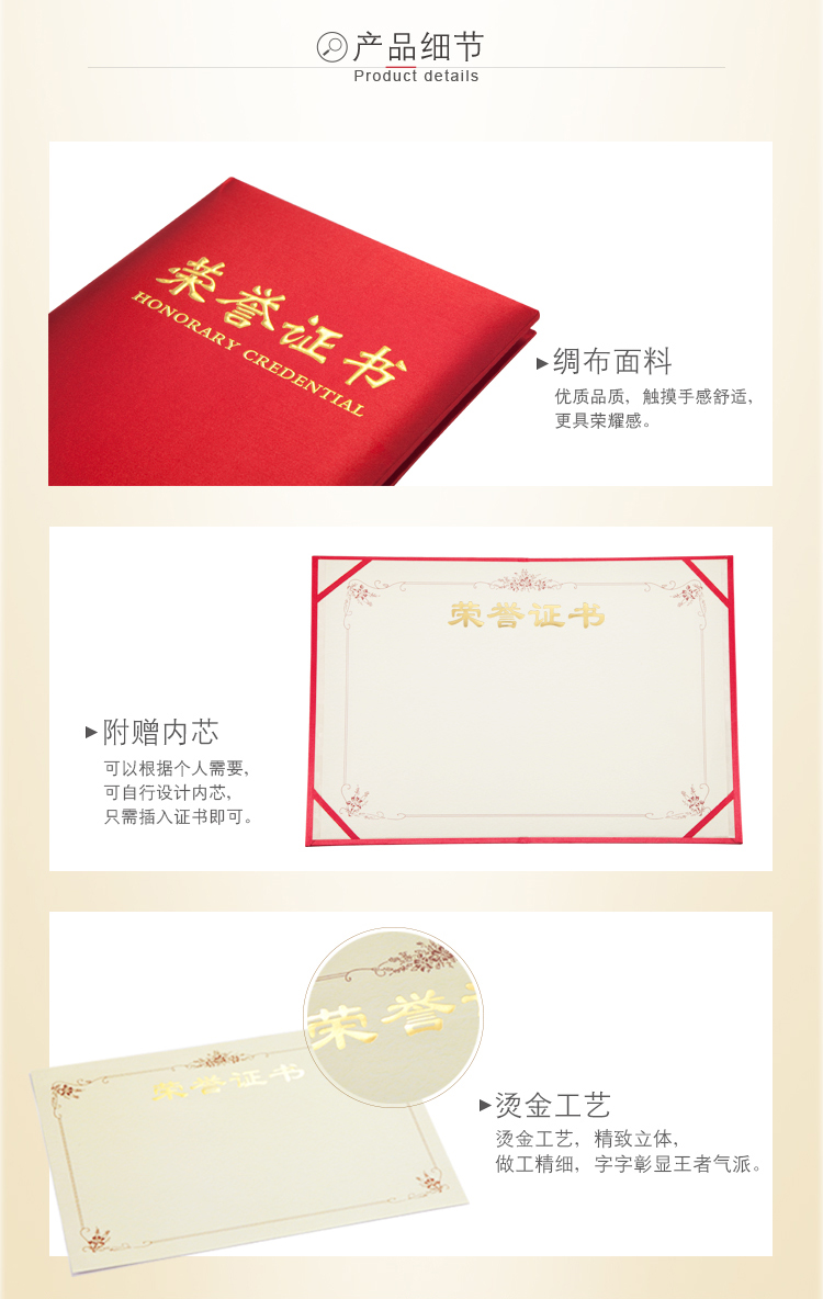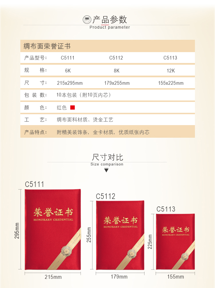 | 齐心C5111,C5112,C5113 红色绸布面荣誉证书 |