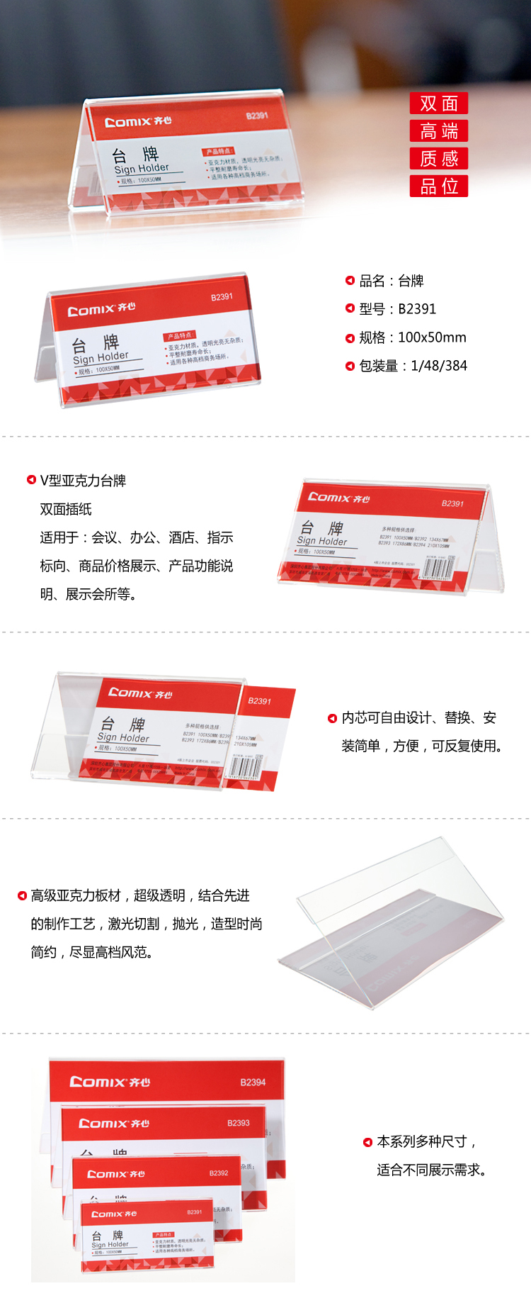 >> 齐心B2391,B2392,B2393,B2394 亚克力双面台牌桌牌会议席牌