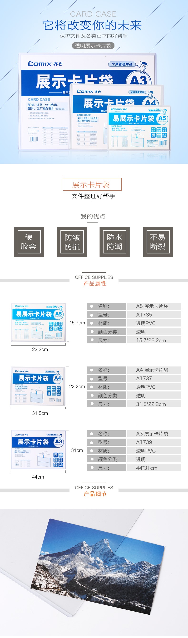 | 齐心A1735,A1737,A1739 透明易 展示 硬质 卡片袋 |