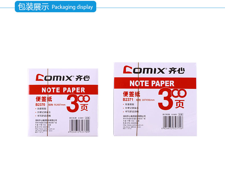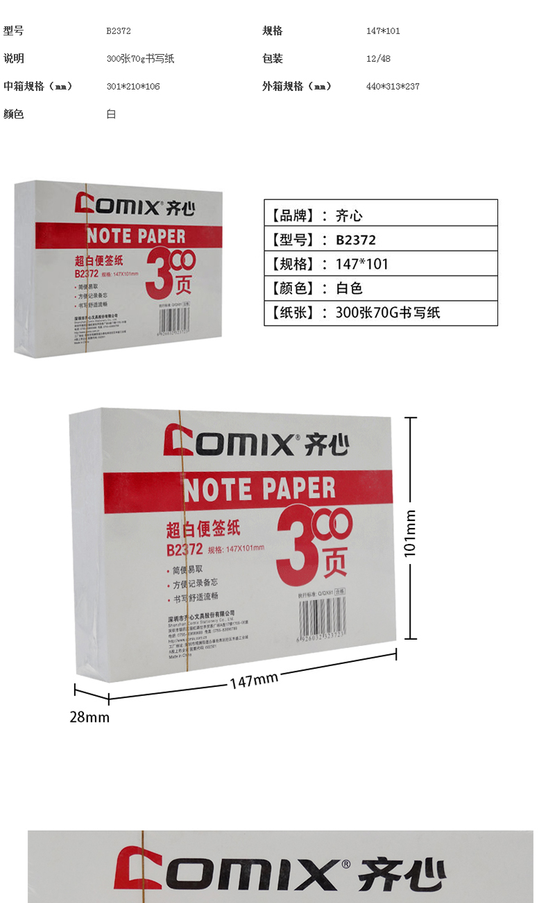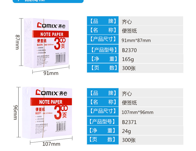 | 齐心B2370,B2371,B2372 白色便签纸300张 | |||