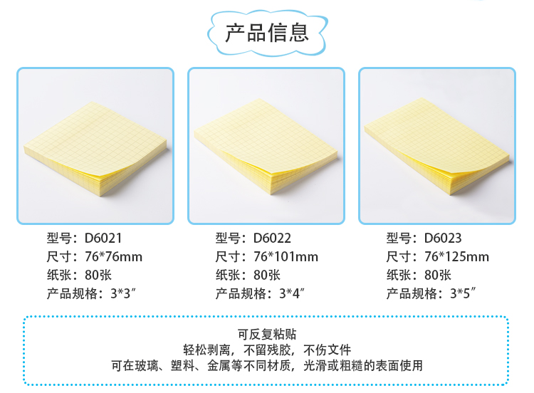 | 齐心D6021,D6022,D6023 黄色方格易事贴80张 | |||