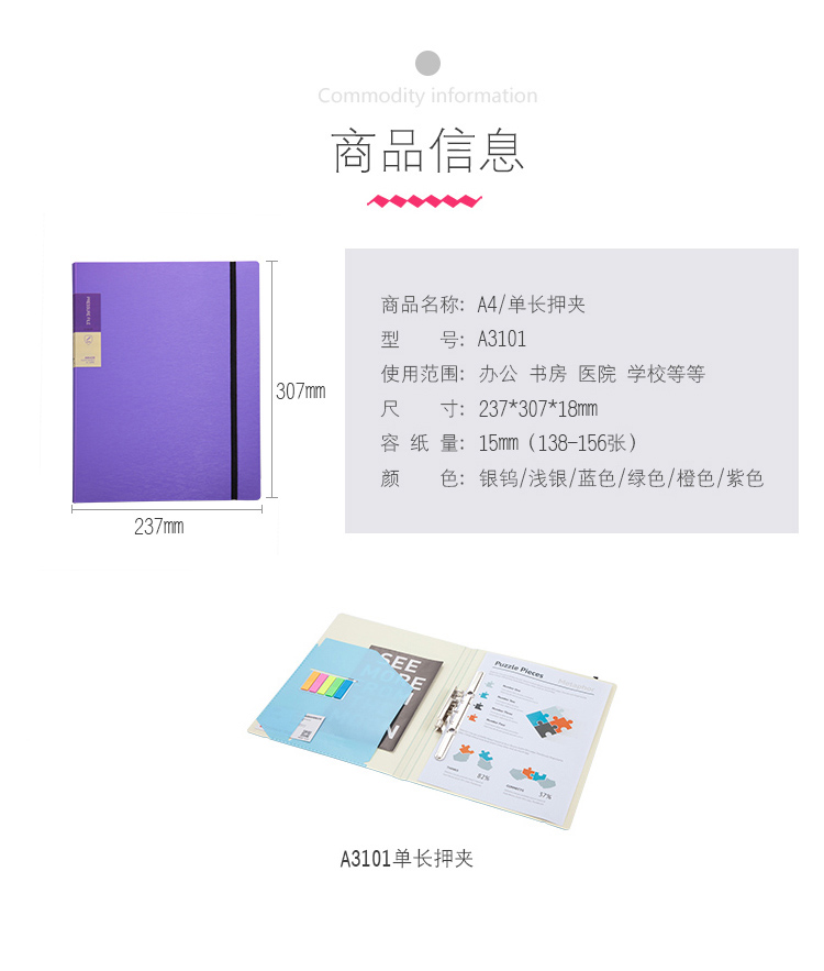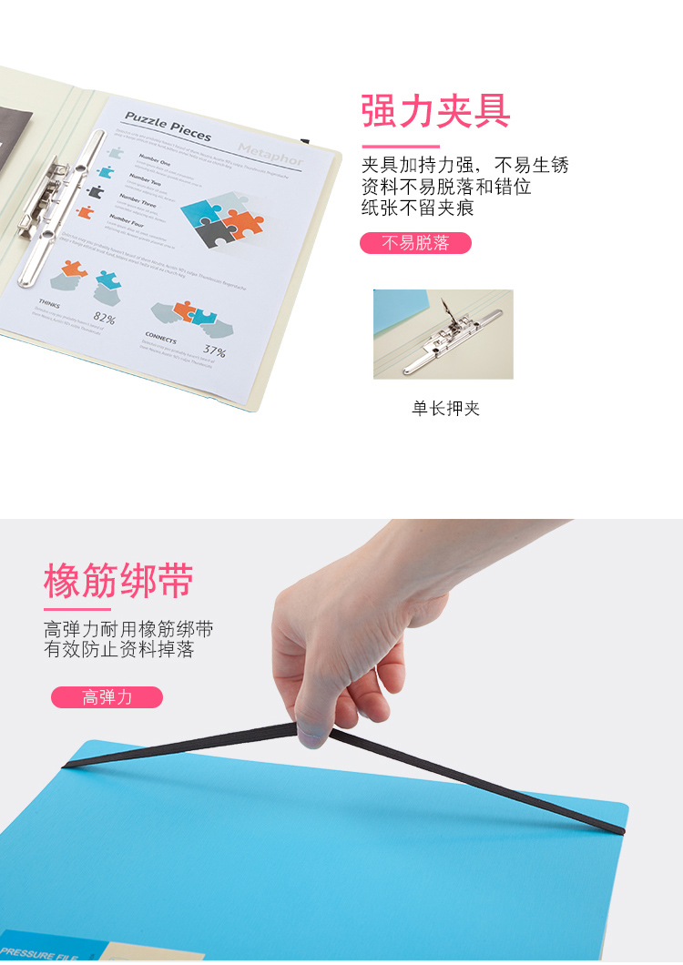 夹具加持力强,不易生锈,文件不易脱落,纸张不留痕。