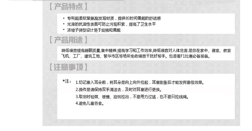 由于膨胀压力较小,密封耳道更舒服,长时间配戴后感觉比其他泡沫耳塞舒适