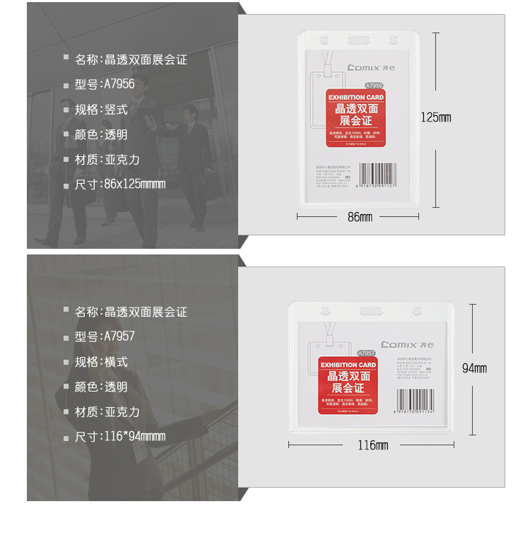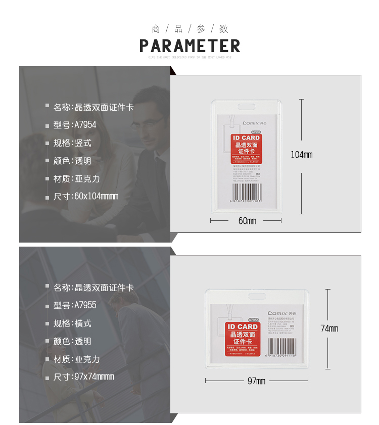 | 齐心A7954,A7955,A7956,A7957 晶透双面证件卡 |