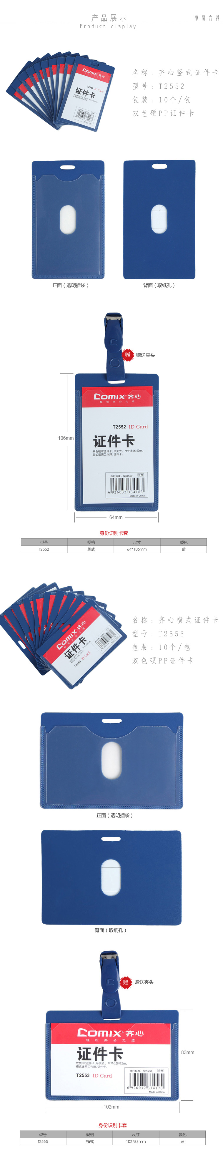 | 齐心T2552,T2553 身份识别卡套 PP硬质 蓝色 |