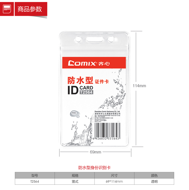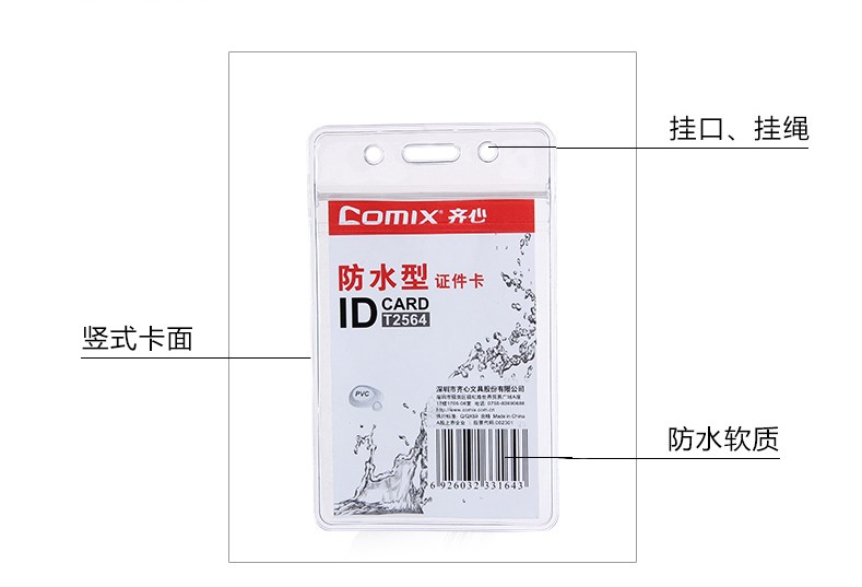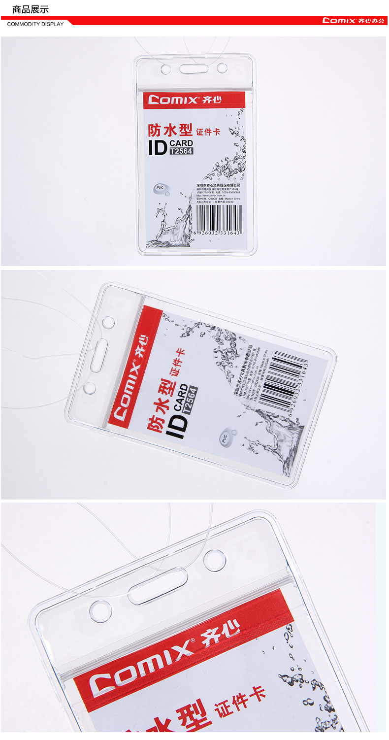 >> 齐心T2564,T2565,T2567 防水型 身份识别卡套证件卡套/展会证套 软质PVC 10个装