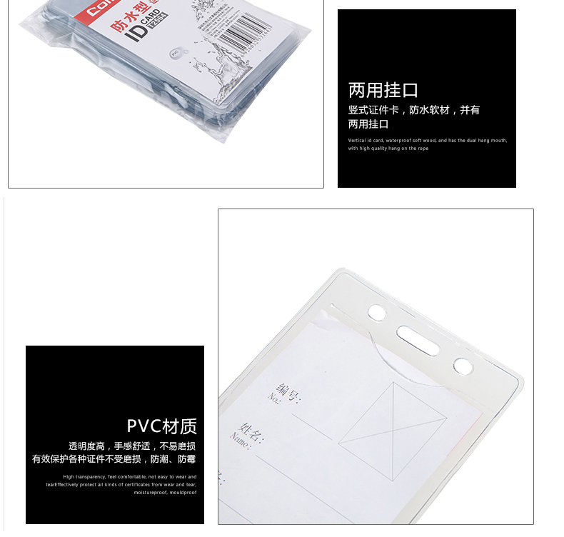 | 齐心T2564,T2565,T2567 防水型 身份识别卡套证件卡套/展会证套 软质PVC 10个装 |