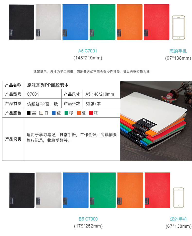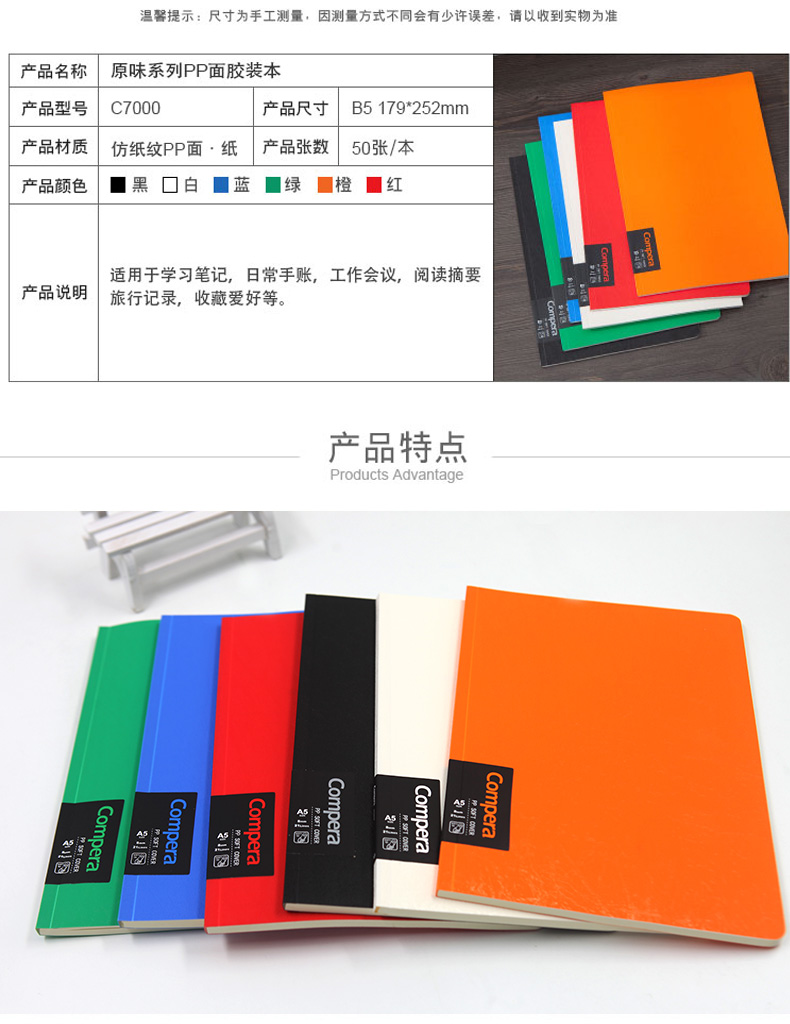 | 齐心C7000,C7001 Compera 原味系列 PP面胶装本 A5/B5 50张 | |||