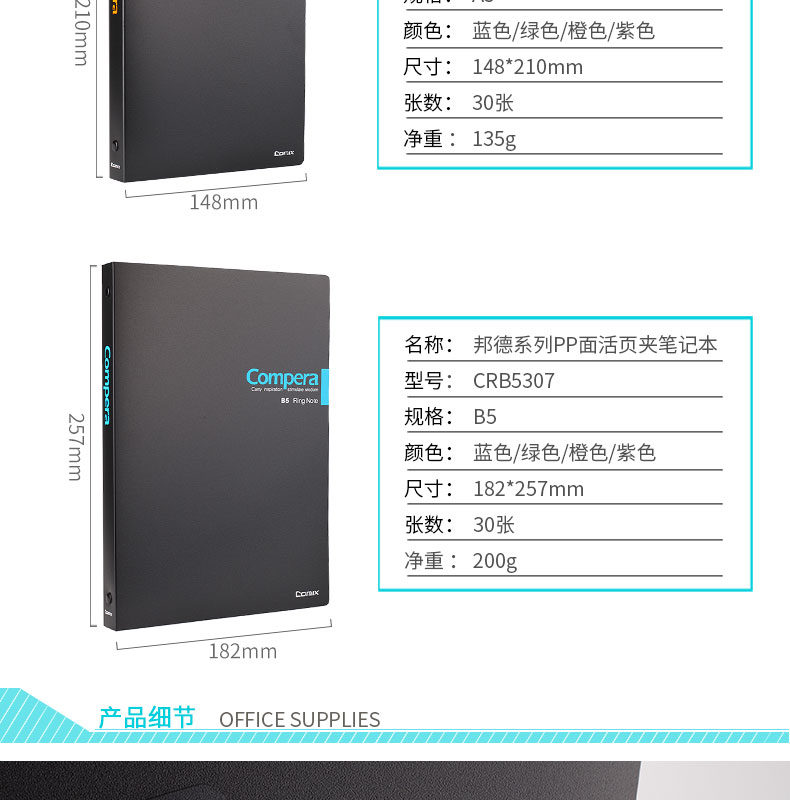 | 齐心CRA5307,CRB5307 Compera20孔PP活张夹本 30张 |
