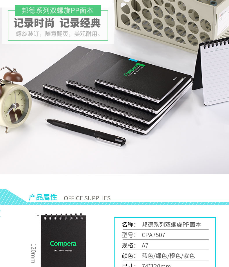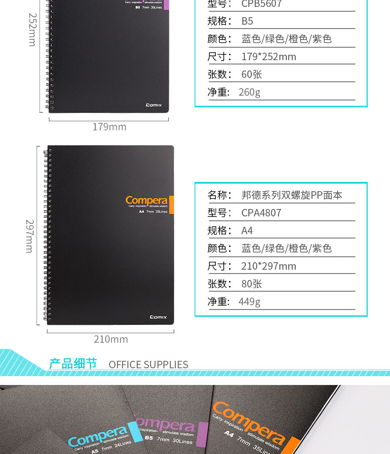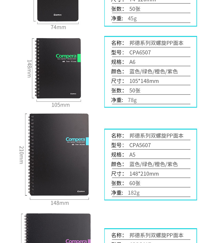 | 齐心CPA4807,CPA5607,CPA6507,CPA7507,CPB5607 Compera双螺旋PP面本 | |||