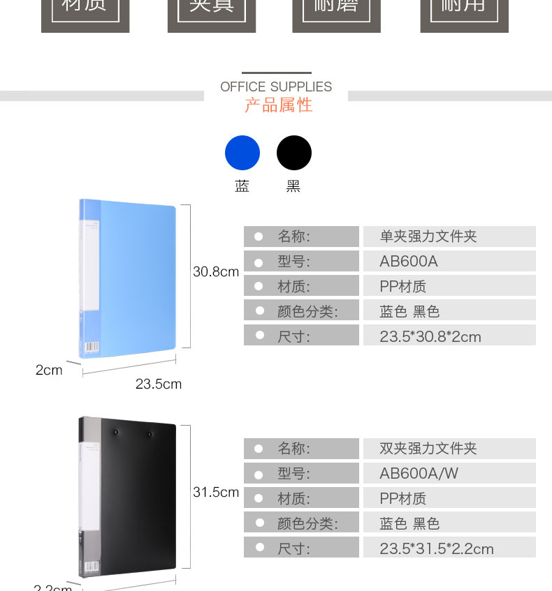 | 齐心AB600A,AB600A-W 超省钱轻便夹 A4 单强力夹/双力夹 |